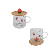 ЧАША СТЪКЛО ЯГОДКА ДЪРВ.ПОСТАВКА/КАПАЧЕ Ф7см Н8см В76260