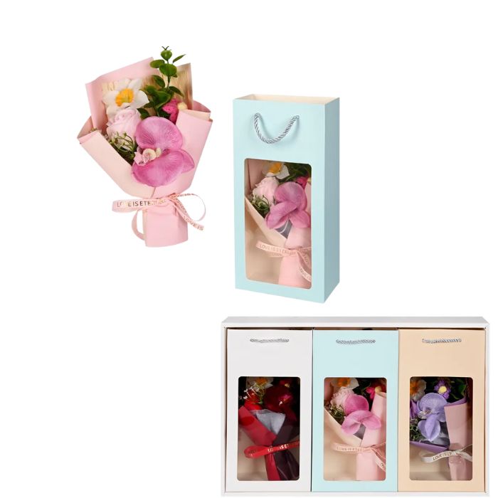 БУКЕТ ОТ САПУНЕНИ РОЗИ В ПОД.ТОРБИЧКА 23см /87405/ КС /3/