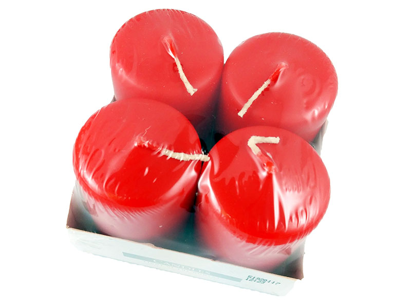 СВЕЩИ ЧЕРВЕНИ цилиндър Bispol 4бр./кутия Н5,5смФ3,5см