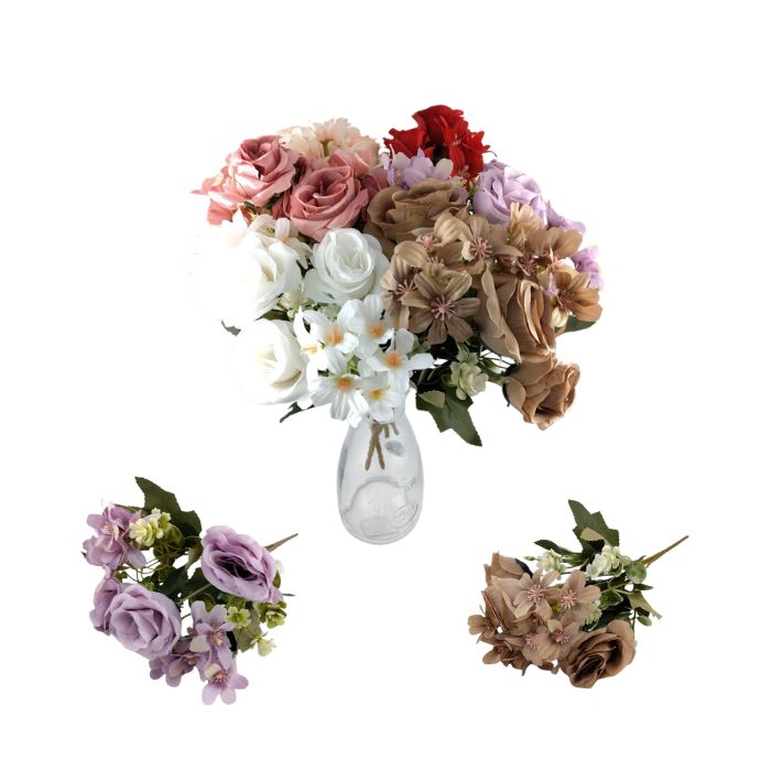 БУКЕТЧЕ РОЗИ С МАРГАРИТКИ И БЕЛИ ПВЦ ЦВЕТЧЕТА 33см LG-10481 /2/