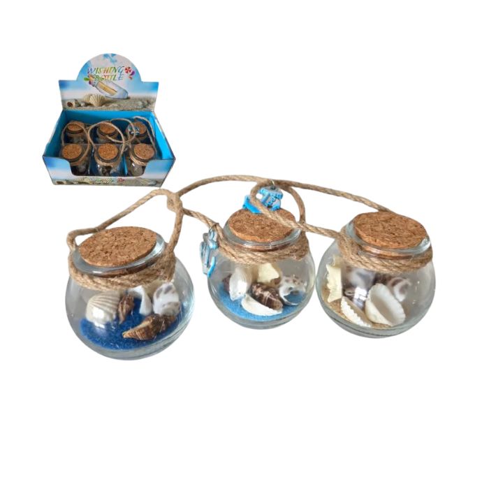 МОРСКИ СУВЕНИР СТЪКЛЕНА БУТИЛКА С РАПАНИ,ПЯСЪК И ВИСУЛКА 5,5см