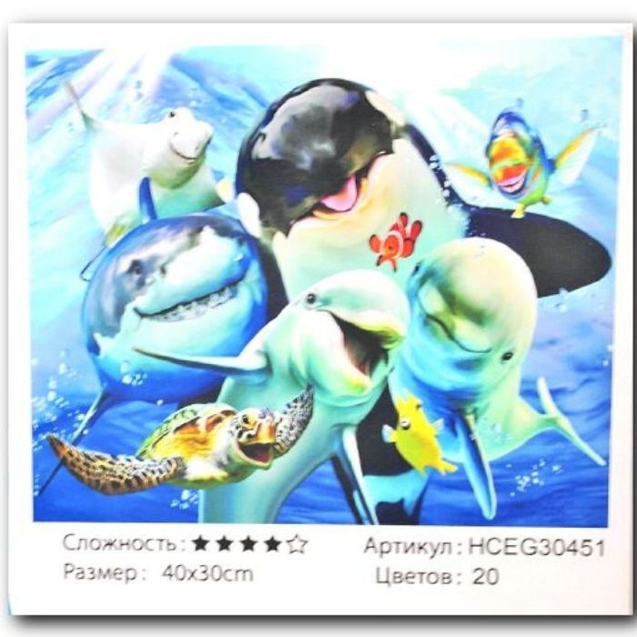 КАРТИНА ЗА РИСУВАНЕ ПО НОМЕРА НА ПЛАТНО "РИБИ" кутия 30х40см.В67642