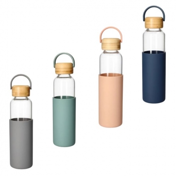 БУТИЛКА СТЪКЛО 550мл СИЛИК.ОБВ. ДЪРВ.КАП. Danny Home