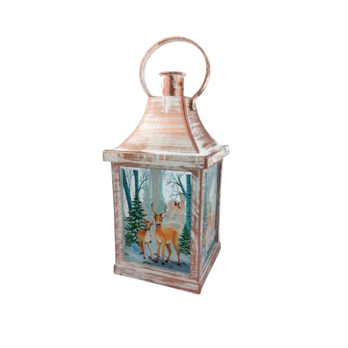 КОЛЕДНА УКРАСА ФЕНЕР СВЕТЕЩ БЯЛ СНЕЖКО С LED ЛАМПИЧКИ 26,5*15,5см