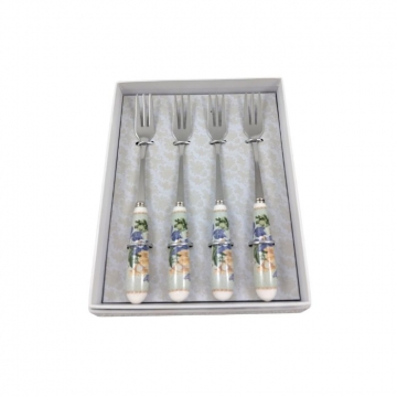 К-КТ 4бр. ВИЛИЧКИ ЗА ТОРТА С ДРЪЖКИ НА ЦВЕТЯ С ПЕПЕРУДИ В ПОД. КУТ. 14,8см