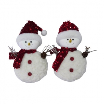 КОЛЕДНА УКРАСА СНЕЖКО БЯЛ С ШАПКА С ПАЙЕТИ ГОЛЯМ ЗА ЗАКАЧАНЕ 25см