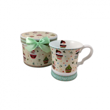 ЧАША ПОРЦ. КОЛЕДНА ДЯДО КОЛЕДА С ЛЪЖИЧКА И ЧИНИЙКА Н9см Ф8,5см КУТ.