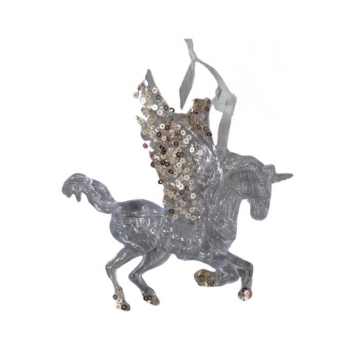 КОЛЕДНА УКРАСА ЕДНОРОГ С ПАЙЕТИ 12*14см пвц прозр.