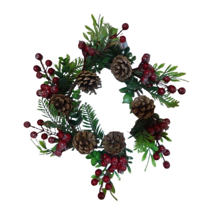 ВЕНЕЦ КОЛЕДЕН С ШИШАРКИ И ЧЕРВ.ТОПЧЕТА Ф30см