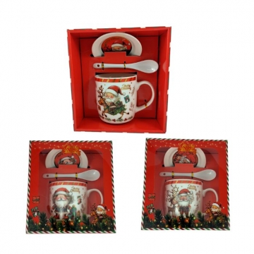 ЧАША ПОРЦ. КОЛЕДНА ДЯДО КОЛЕДА С ЛЪЖИЧКА И ЧИНИЙКА Н9см Ф8,5см КУТ.