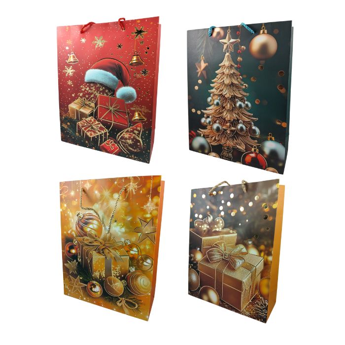 ТОРБИЧКИ ПОД. 10бр. КАРТОН КОЛЕДНИ ПОДАРЪЦИ БЛЕСТЯЩИ 32*26*10см