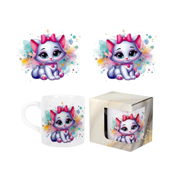 ЧАША КЕРАМ. НИСКА ДЕТСКА КОТЕ С ПАНДЕЛКА Н7см Ф7см В КУТИЯ