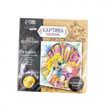 КАРТИНА ЗА РИСУВАНЕ С ПЯСЪК ПО НОМЕРА "КОТЕ" 19*19см