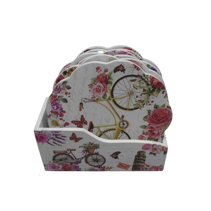 К-КТ 6бр.ПОДЛОЖКИ ЗА ЧАШИ КАФЕ С ПОСТАВКА МДФ Ф10,5см РОЗИ