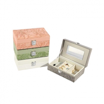 КУТИЯ ЗА БИЖУТА КОЖА С РЕЛЕФНИ ЦВЕТЯ ЗАКОПЧ. 16,3*10,4*5,8см