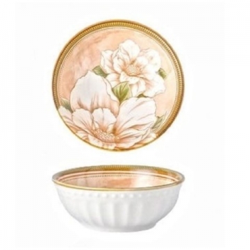 КУПА КЕРАМ. ДЪЛБОКА Ф20см Н9см БЕЖОВИ ЦВЕТЯ В77390 /4/