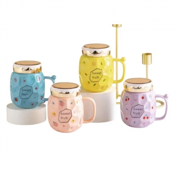 ЧАША ПОРЦ. С КАПАЧЕ И ЛЪЖИЧКА РОЗОВА ОСМОЪГ. Ф7,5см Н8,5см ПОД.КУТ.