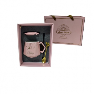 ЧАША ПОРЦ. С КАПАЧЕ И ЛЪЖИЧКА РОЗОВА ОСМОЪГ. Ф7,5см Н8,5см ПОД.КУТ.