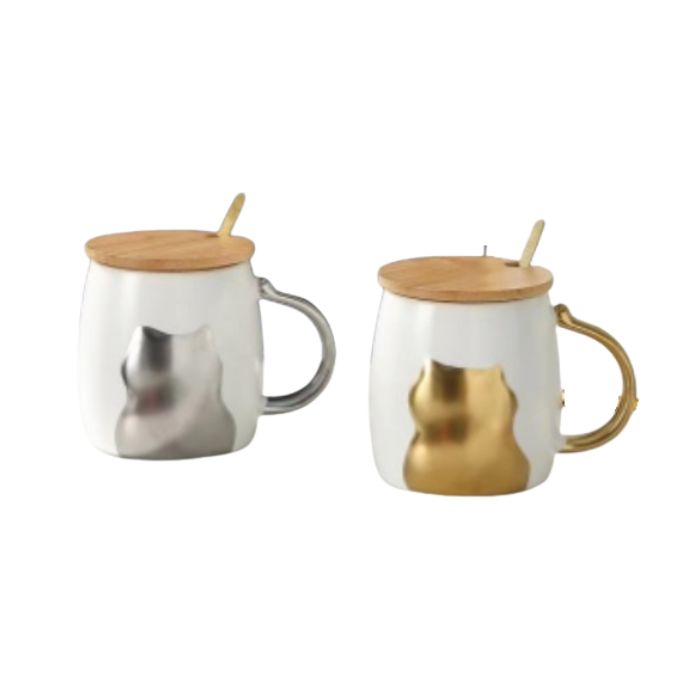 ЧАША ПОРЦ. ЗЛАТНА КОТКА С КАПАЧЕ И ЛЪЖИЧКА 470мл Ф8,5см Н10см