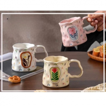ЧАША ПОРЦ. ВИСОКА С ЦВЕТЯ РЕЛЕФНА 380мл Ф8см Н9,5см