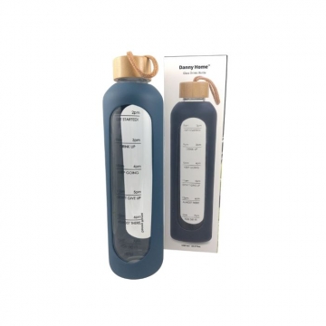 БУТИЛКА СТЪКЛО 1000мл СИЛИК.ОБВ. ДЪРВ.КАП. РАЗГРАФЕНА СИНЯ Danny Home