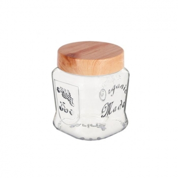 БУРКАН СТЪКЛО ORGANIC MADE ДЪРВ.КАПАК 425мл S-801-1 SARINA /290622/ /12/