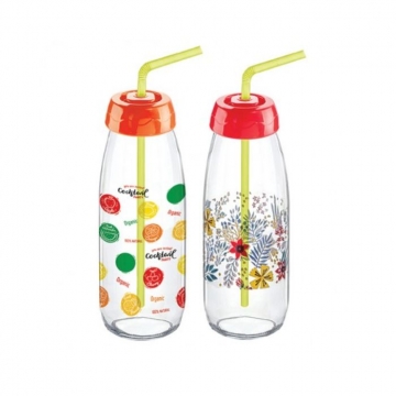 БУТИЛКА СТЪКЛО СЪС СЛАМКА ДЕКОР 500мл S-764 SARINA /290594/