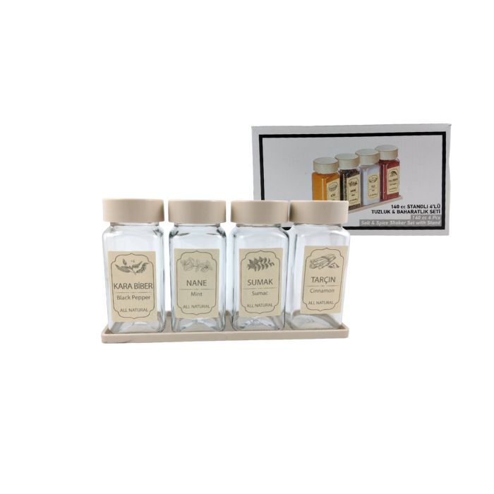 К-КТ 4бр. БУРКАНЧЕТА ЗА ПОДПРАВКИ СТЪКЛО С ПОСТАВКА ЕДНОЦВ.КАПАК 140мл S-725 SARINA /290582/