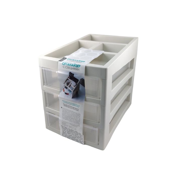 ОРГАНАЙЗЕР УНИВЕРСАЛЕН СКОСЕН с 3 чекмеджета С ОТДЕЛЕНИЯ 18,5х26см Н24см