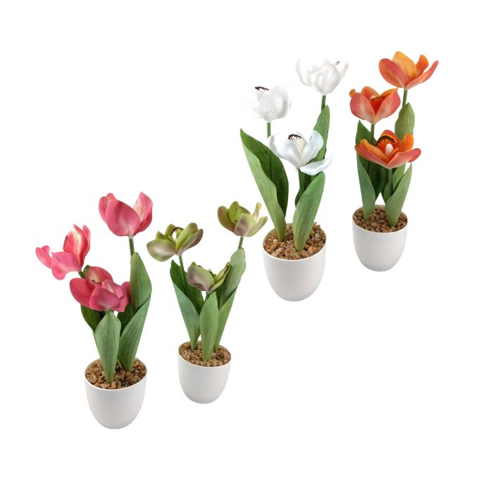 ИЗК.ЦВЕТЕ ЦВЯТ СЪС ЗЕЛЕНИНА В БЯЛА ПВЦ САКСИЯ РАЗЛ.ЦВ. 20см В77511 /6/