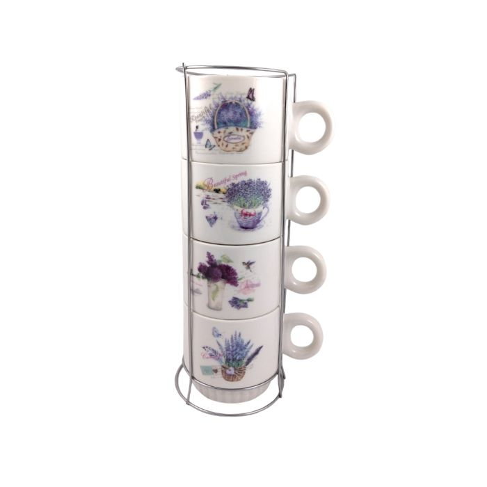 К-КТ 4бр. ЧАШИ ПОРЦ. ЛАВАНДУЛА С МЕТАЛНА ПОСТАВКА