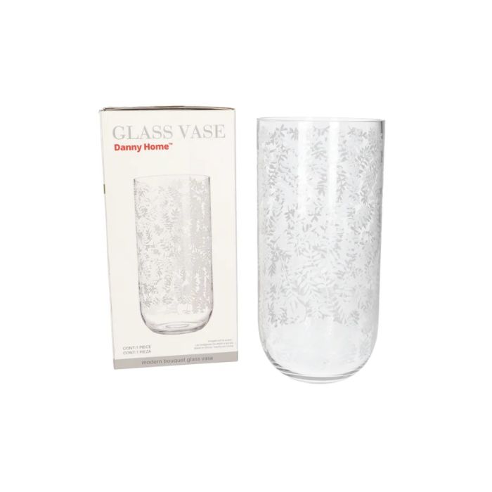 ВАЗА СТЪКЛО НА БЕЛИ ЛИСТА Н25см Ф12см Danny Home