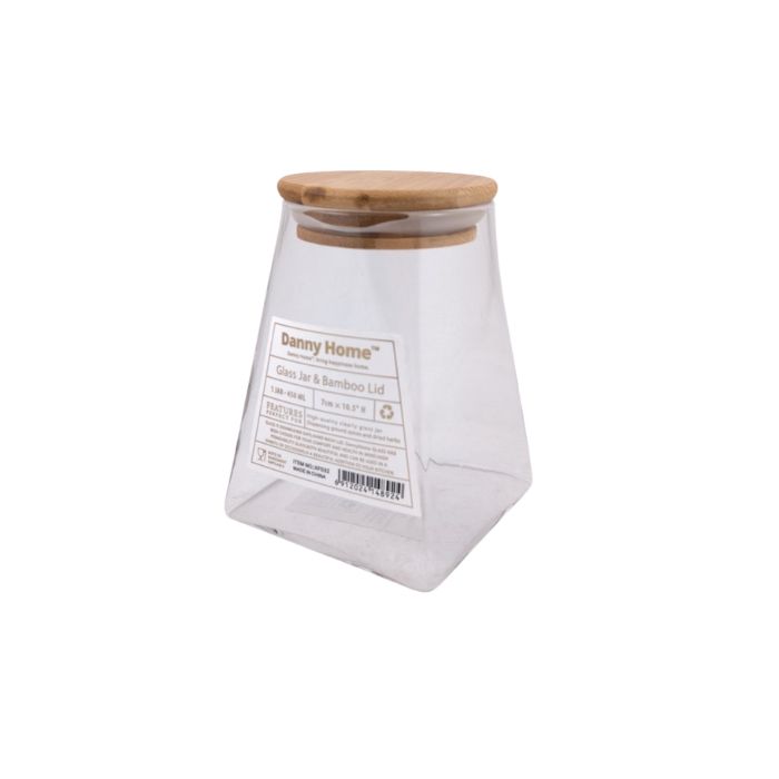 БУРКАН СТЪКЛО С ДЪРВ. КАПАК ПИРАМИДА 450мл Danny Home