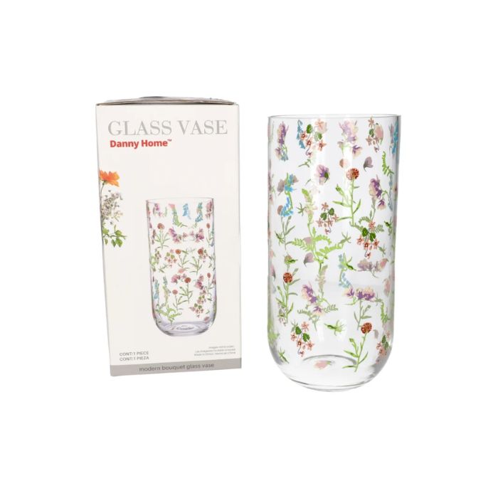 ВАЗА СТЪКЛО НА БЯЛ ФЛОРАЛ.МОТИВ Н25см Ф12см Danny Home