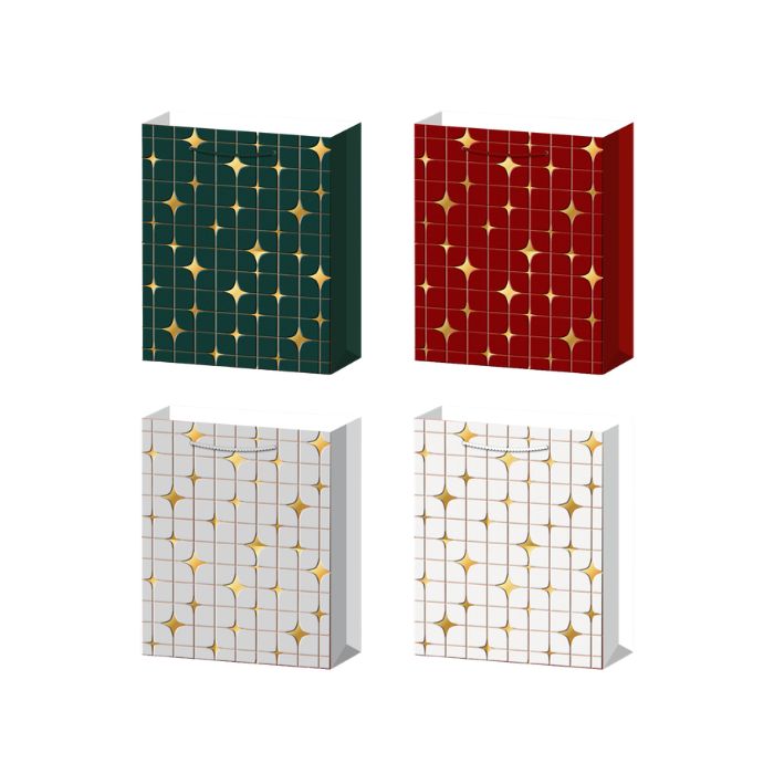 ТОРБИЧКИ ПОД. 10бр. КАРТОН ЗА БУТИЛКА ЛЪСКАВИ ЗВЕЗДИ 35*12*9см