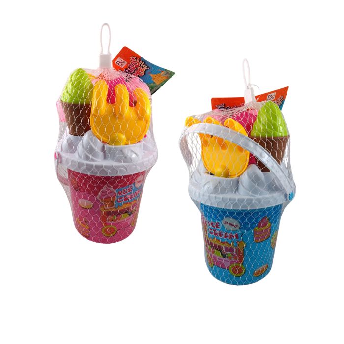 КОФИЧКА ЗА ПЯСЪК СЛАДОЛЕД.КОЛИЧКА Ф18смН29см / сито, лопатка, гребло 2 формички,2 сладоледа