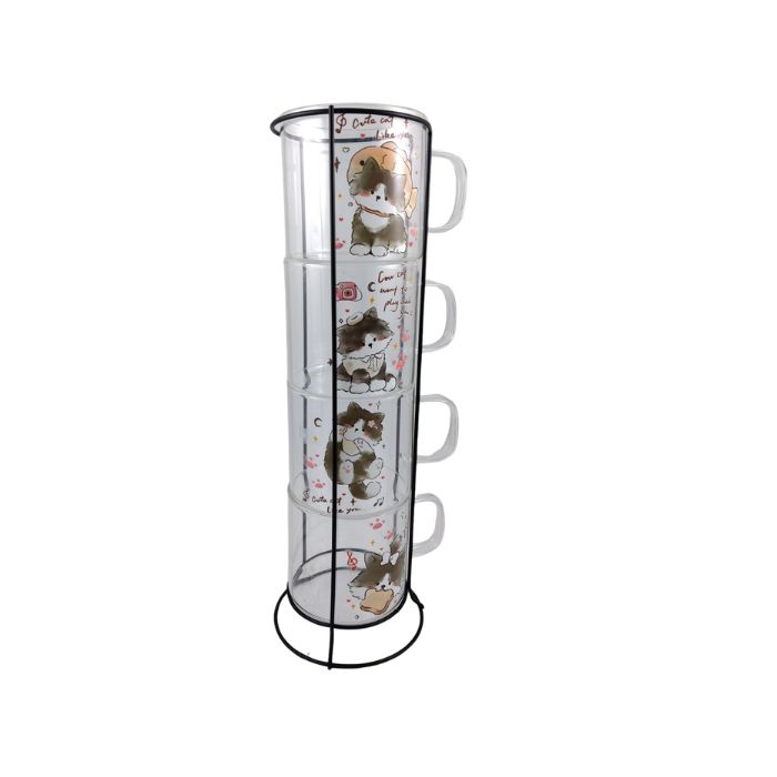 К-КТ 4бр. ЧАШИ СТЪКЛО С МЕТ.ПОСТАВКА КОТЕ Ф8см Н7,5см