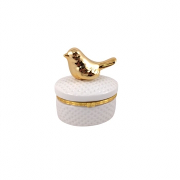 КУТИЯ ЗА БИЖУТА КЕРАМ. БЯЛА ОВАЛ С ПТИЧЕ 8*9см