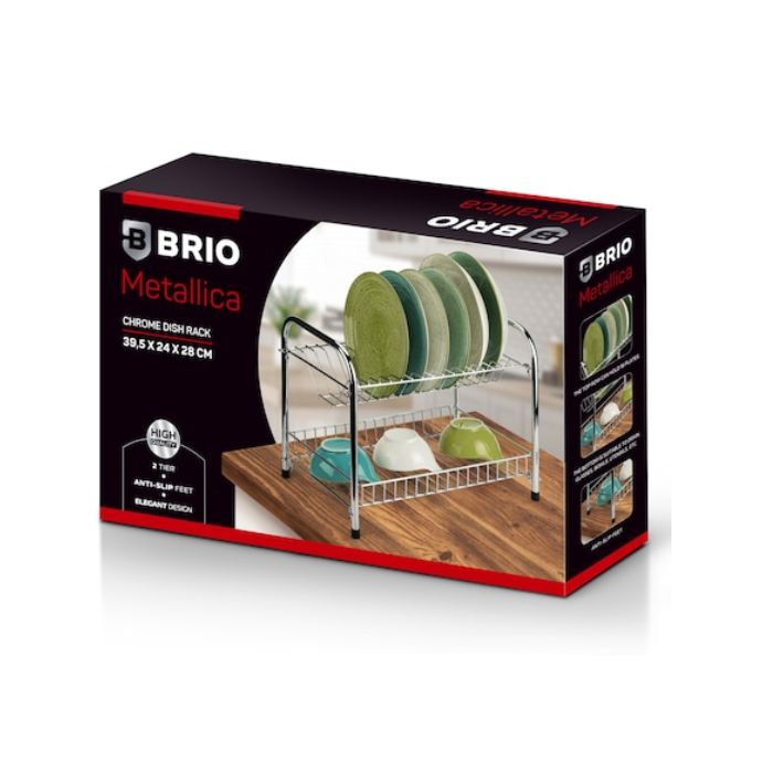 СУШИЛНИК ЗА СЪДОВЕ И ПРИБОРИ 2 нива хром 39,5х24х28см BRIO Metalica