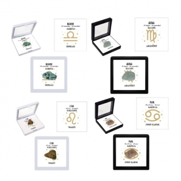 ПОЛУСКЪПОЦЕНЕН КАМЪК/ТАЛИСМАН В КУТИЙКА ЗОДИЯ РАЗЛ.ВИДОВЕ 7*7см с поставка