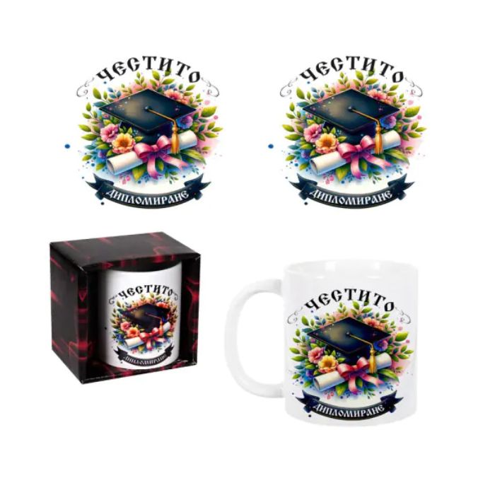 ЧАША КЕРАМ."Честито дипломиране цветя" В КУТИЯ Ф8см Н9см